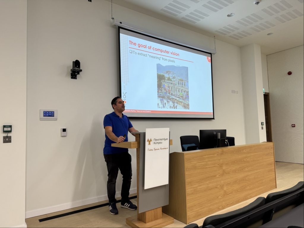 The Autonomous Vehicle AI School was organised by IEEE UCY Student Branch and the ITSS Cyprus Chapter, giving students practical exposure to AI for drones and autonomous vehicles. Dr. Christos Kyrkou outlined how GUARD AI supports these areas through work on robust perception and trustworthy AI.