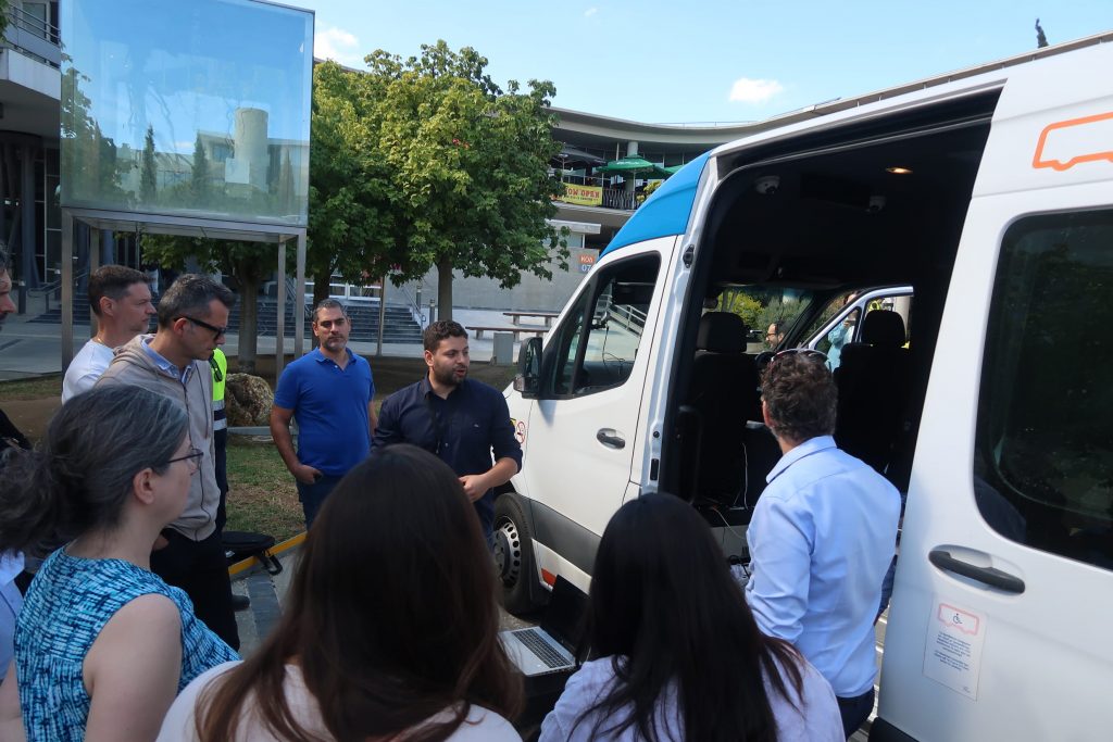 During the two-day meeting, partners had the opportunity to experience live demonstrations onboard the Demand-Responsive Transport (DRT) bus provided by Nicosia Public Transport (NPT). Research teams from UCY and CERTH demonstrated early prototypes of in-cabin monitoring and environmental sensing technologies that will form part of the upcoming pilots. These included air-quality and thermal-comfort monitoring systems, camera-based modules for safety-related use cases, and real-time data streaming to UCY’s IoT platform. The demonstrations helped validate sensor placement, data flows, and system behavior in real operating conditions, preparing the ground for pilot deployment.