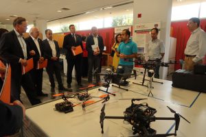 The emergency response team is presenting to visitors the technology of the unmanned aerial vehicles developed by researchers